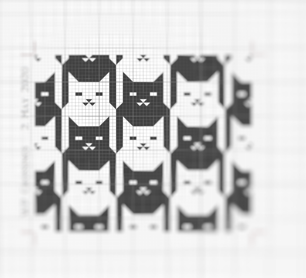 Cross stitch pattern of a cat houndstooth pattern. Pattern shown can easily be repeated for whatever size, frame, or hoop desired. No DMC color is specified. User is encouraged to stitch with their choice of color. Recommend to use a dark color on light Aida or a light color on dark Aida.